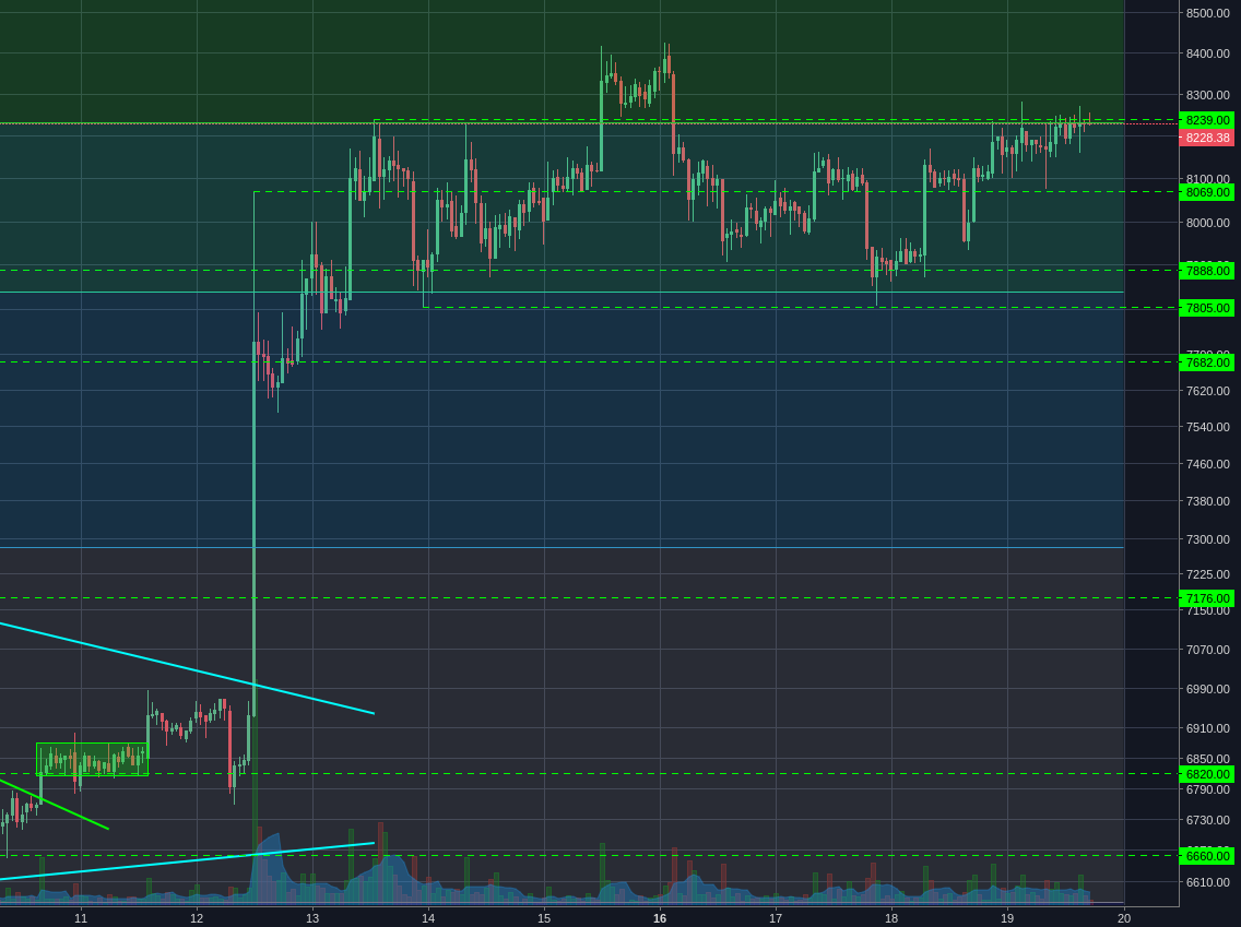 Its still best to keep positions in check and only build up nearer support levels to reduce downside risk, but this is looking a lot more bullish given the tests of $8239.