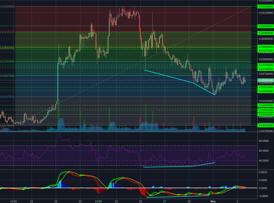 Less conservative traders may wish to make small positions here to bet on a return to 0.03200, but this isn't a very high confidence trade, so size appropriately with a tight stop loss.