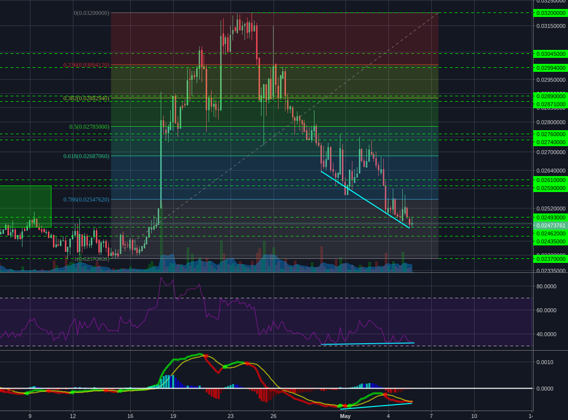 Monero draws nearer and nearer to the 0.02370 support against slight bullish divergence. Unless we can form a good bounce, this is looking pretty bleak for XMRBTC, with very few support levels below 0.02370.