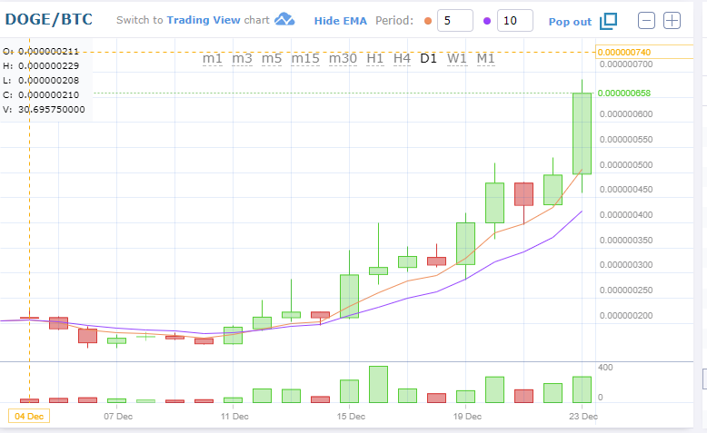 In this dark time for BTC - Dogecoin, on the Rise!mattuebel (54)in #cryptocurrency • 8 years ago While not yet at it's recent peak from back in April, Dogecoin is doing quite well now. Might be something to keep an eye on if you have any dogecoin lingering somewhere in your sock drawer 0_o To the Moon! #blog #dogecoin #crypto #much-wow
