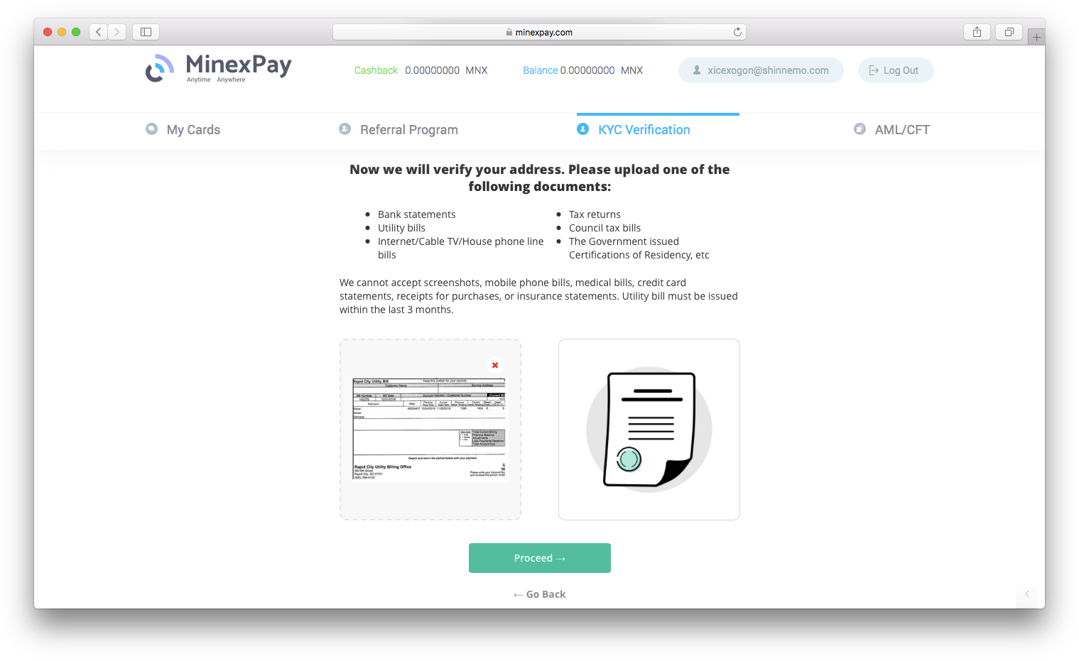 For address verification, upload a high-res picture of one of the documents from the list. It should not be older than three months.
