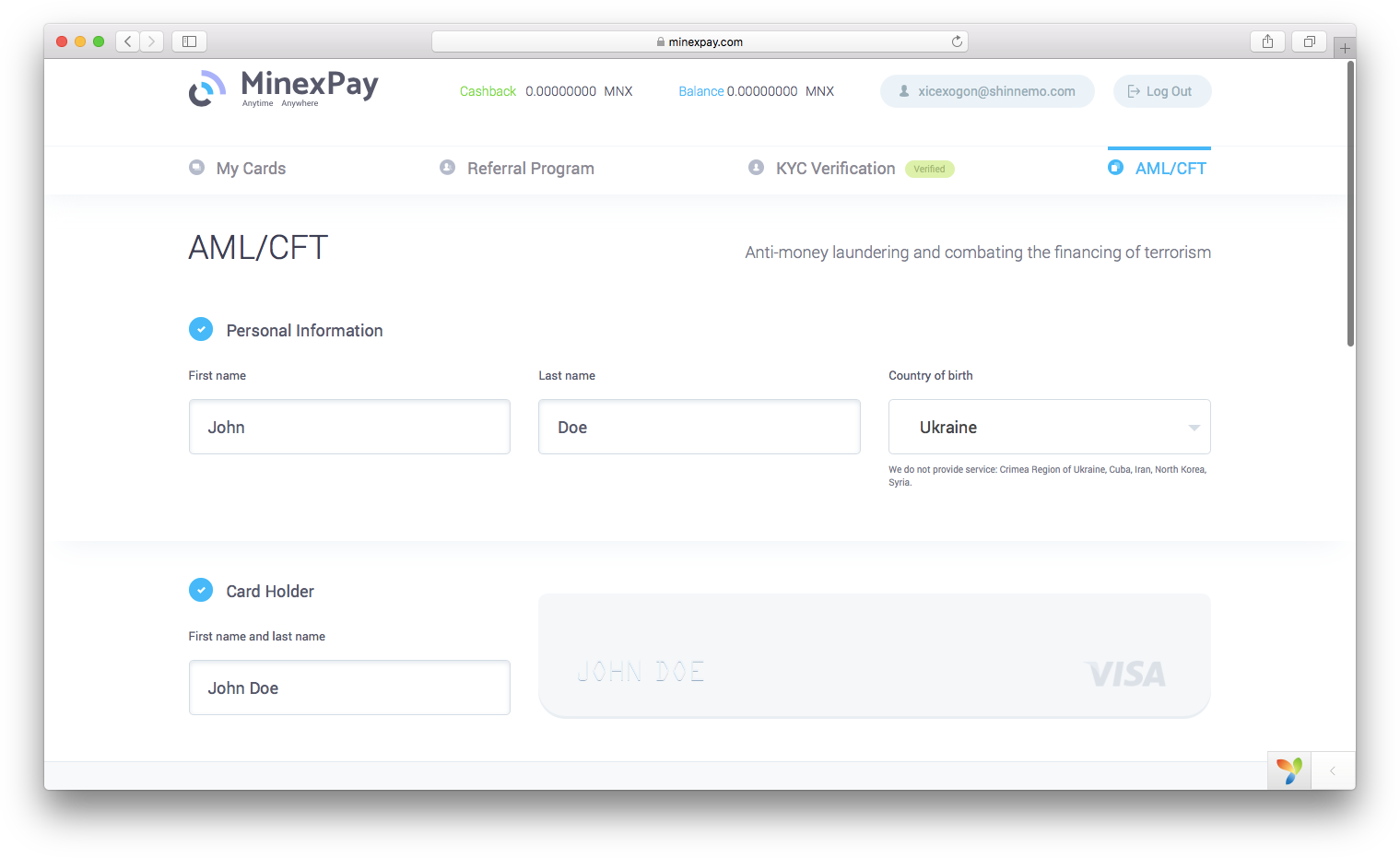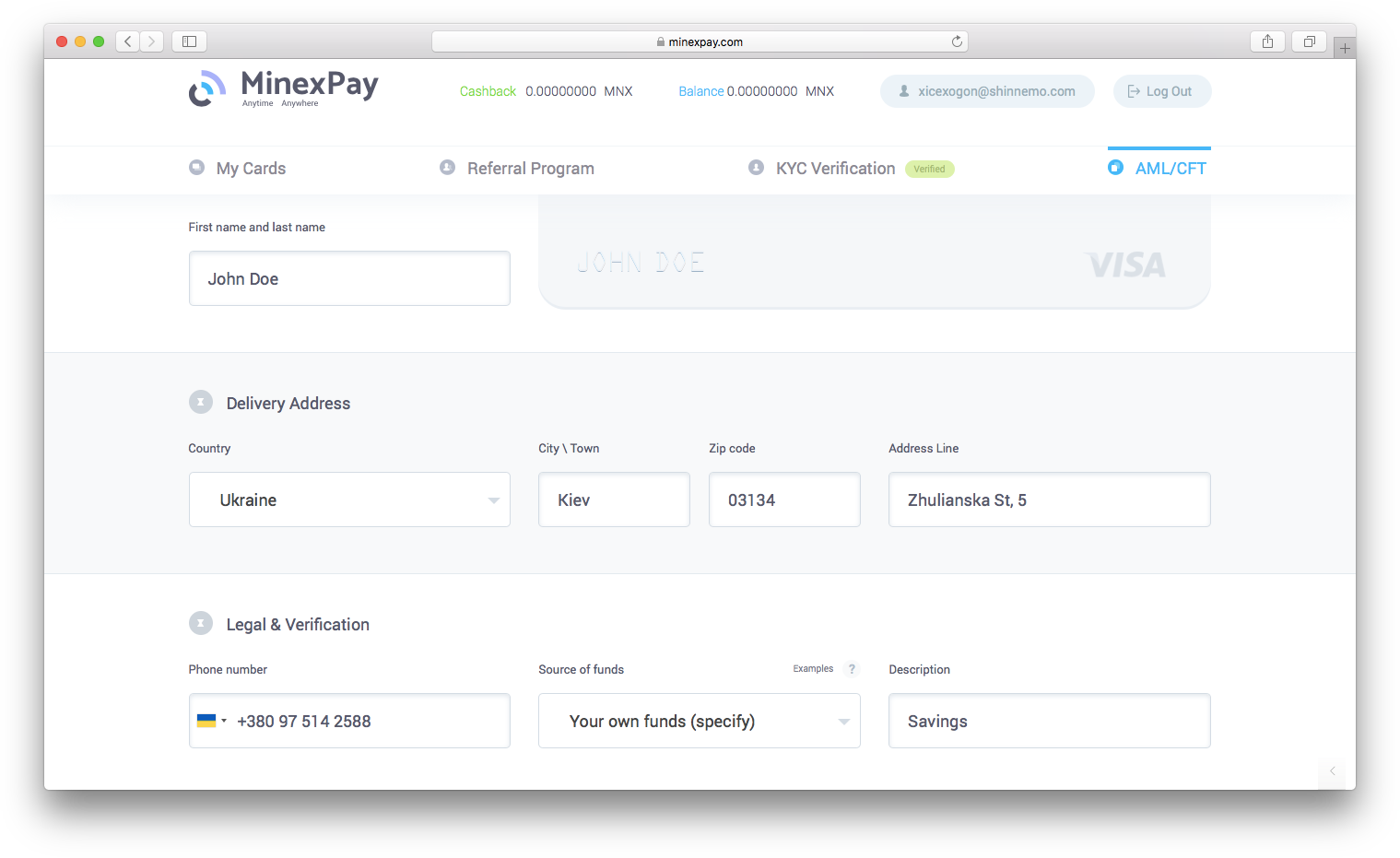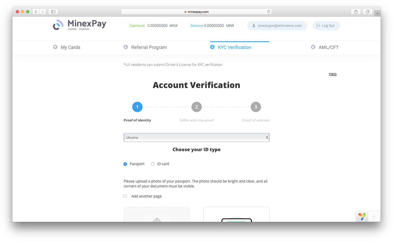 When you order a MinexPay card, we kindly ask you to provide some information and supporting documents to prove your identity.