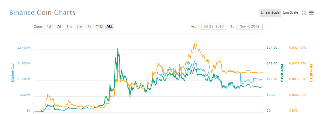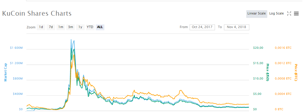 In these charts you can see how the biggest exchange coins performed during the last bull run. Both started at approx. $1 and went to over $20! You can see that KCS dropped back to the initial $1 price while the BNB dropped only by 50%.