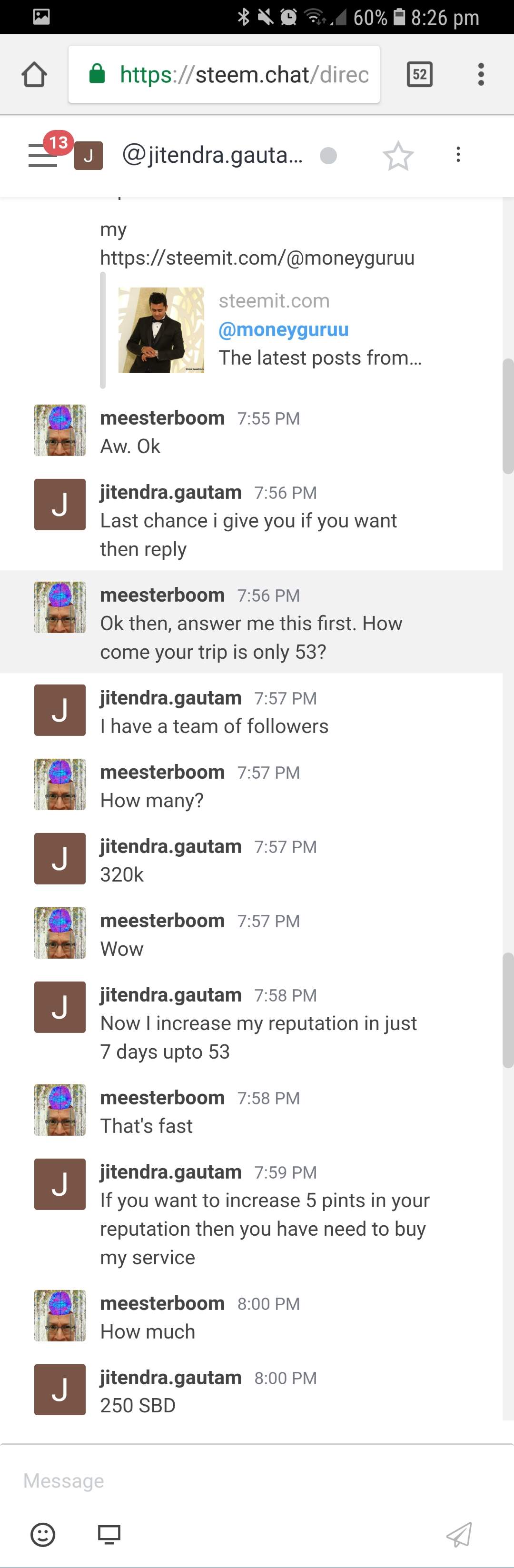 Good stuff, tried to get 250 SBD from me on chat to increase my rep :0D