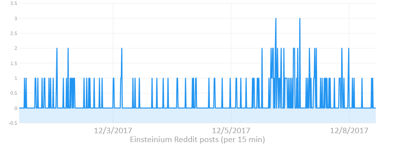 Reddit volumes are taken from CoinMarketTweet. Subreddits must have had at least 10 posts in the last 48 hours