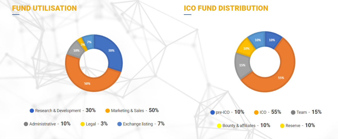トークンセールからの資金調達額の100%は、このホワイトペーパーに記載されているように、ステージ1プラットフォームの開発およびマーケティング戦略の実施に使用されます。
