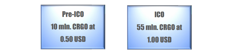 プレICOは非常に短期間で実行され、一定期間、公開されます。 1 CRGOの価格は、ICO前の段階で0.50米ドルに固定されます。 合計10百万ユーロ。 CRGOトークンは、ICO前段階で配布されます。 preICO期間中、サポーターは通常価格の50%でCRGOを購入することができます。 プレICOは、2018年4月1日@ 00:00〜2018年4月15日@ 23:59から15日間実行されます。 ソフトキャップは5百万米ドルに達すると推定されている。