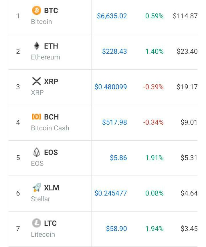 We all crypto lovers eagerly waiting for the bull market but the market is still sleeping but don't worry about it. Because it's the normal nature of crypto market. Today there is no big change on crypto market. Today Bitcoin is at 6635$, Etherium is at 228$, Xrp is at 0.48$, Bitcoin Cash is at 517$, EOS is at 5.86$, Litecoin is at 58.90$.