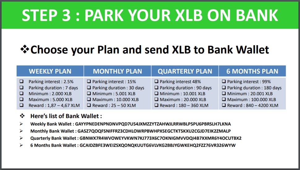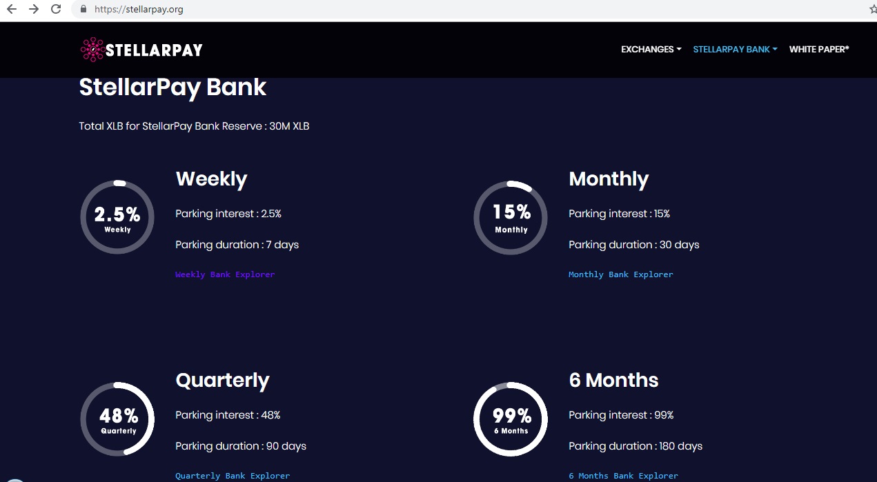 But in addition to that they created a "BANK" So, how does it work ??? You can "park" or "stake" or "freeze" or "stash" your XLB coins for the certain period of time and receive percentage for that.