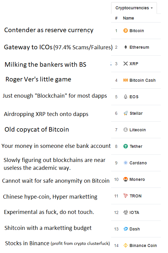 I tend to agree with these notes. Bitcoin is the only one with true valur and the others are either too aggressive and just haven't faced the problems bitcoin already has. Time will show what has true value.