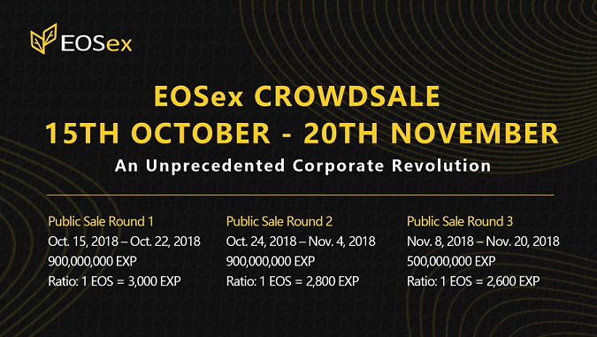 EOSex stands for EOS and Exchange. We set EOS directly in our title to demonstrate our leading commitment to and support for its EOS platform, for caliber dApps, also for its develop- ment of a concerted and collaborative ecosystem.