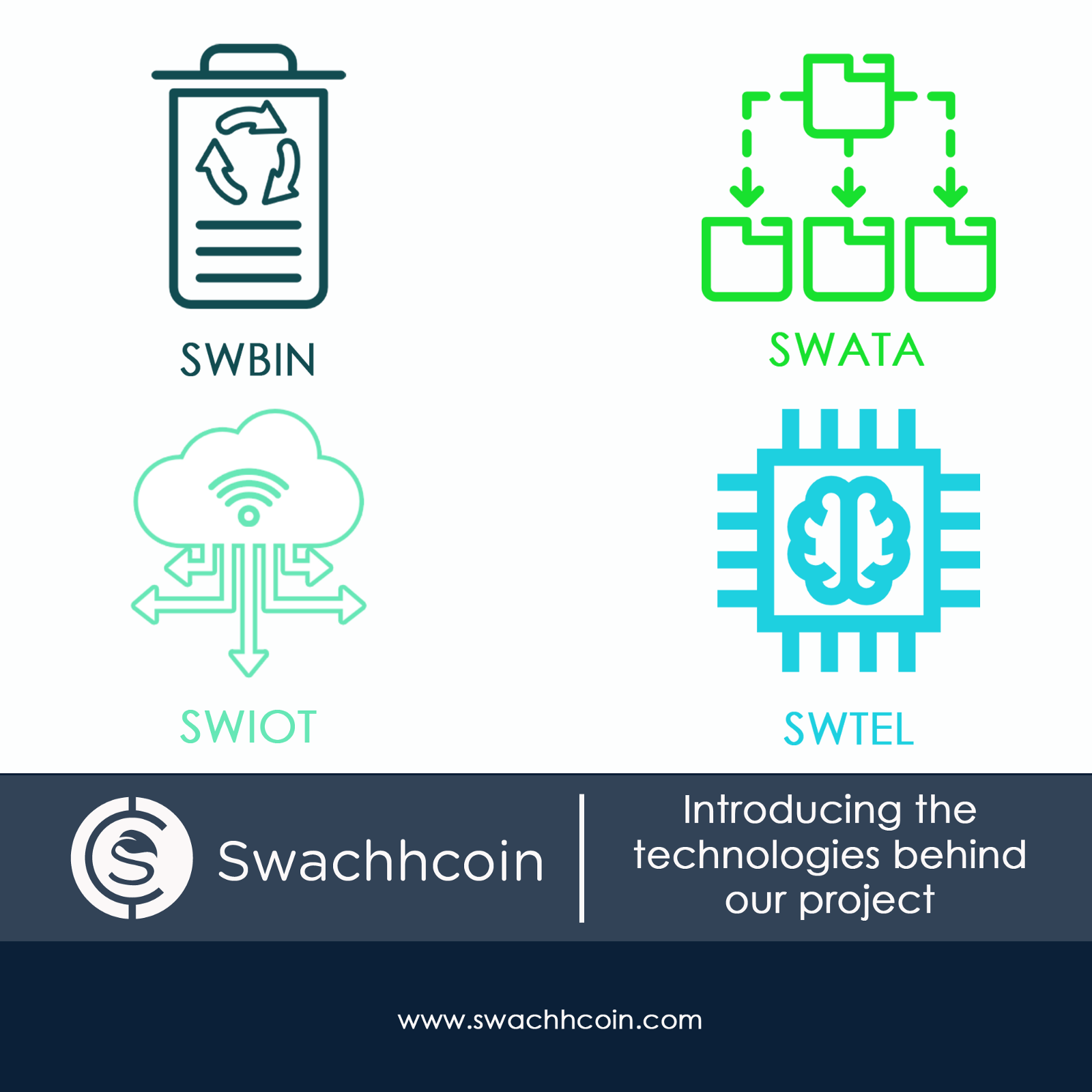 Swachhcoin aims to develop a diverse and customizable waste management ecosystem for transforming the resulting wastes into high economic value, valuable products, while controlling the responsible wastes by utilizing the IoT integrated with AI, Big Data, Blockchain technology and It aims. it is also a non-profit organization. Everyone around the world can contribute to this goal and overcome difficulties. The project team will thus make the existing waste management industries as efficient and usable as possible, so that they can cope with the technological and world-wide imminent waste management crisis.