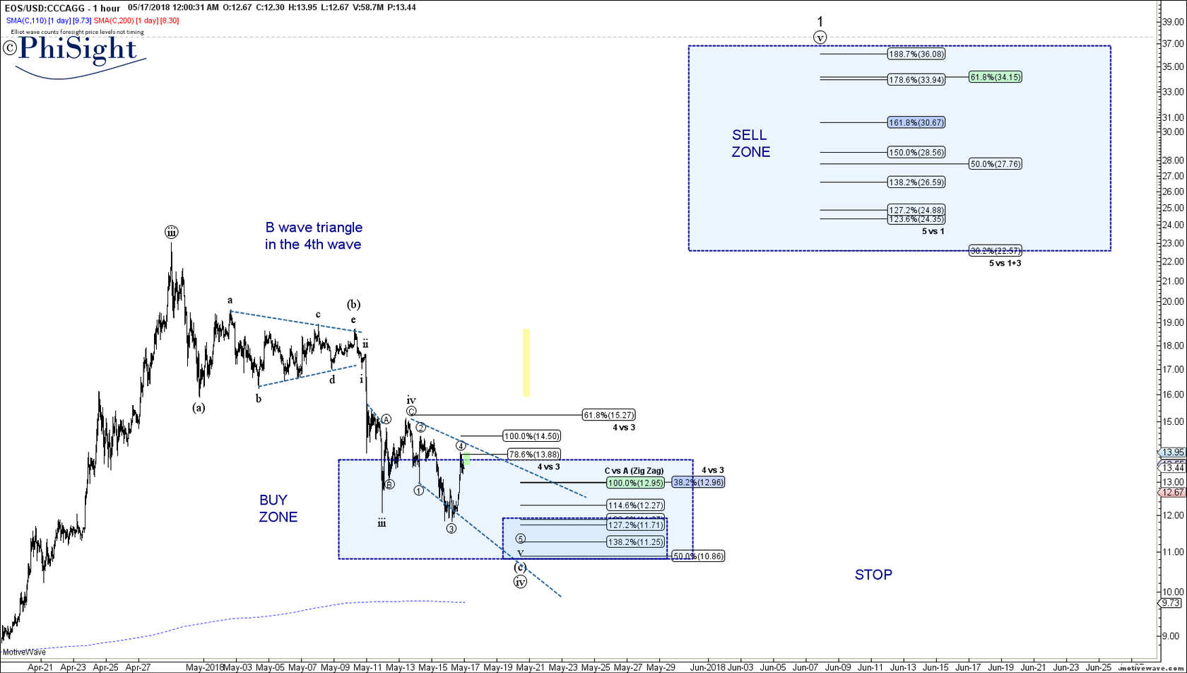 On May 17th, I had presented this chart with the title: EOS EOS/USD Final Squiggles setting up completion of decline amd Turn around UP expected soon