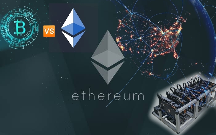-Like Bitcoin, Ethereum is a distributed public blockchain network. Although there are some significant technical differences between the two, the most important distinction to note is that Bitcoin and Ethereum differ substantially in purpose and capability. Bitcoin offers one particular application of blockchain technology, a peer to peer electronic cash system that enables online Bitcoin payments. Bitcoin blockchain is used to track ownership of digital currency (bitcoins), while the Ethereum blockchain focuses on running the programming code of any decentralized application.