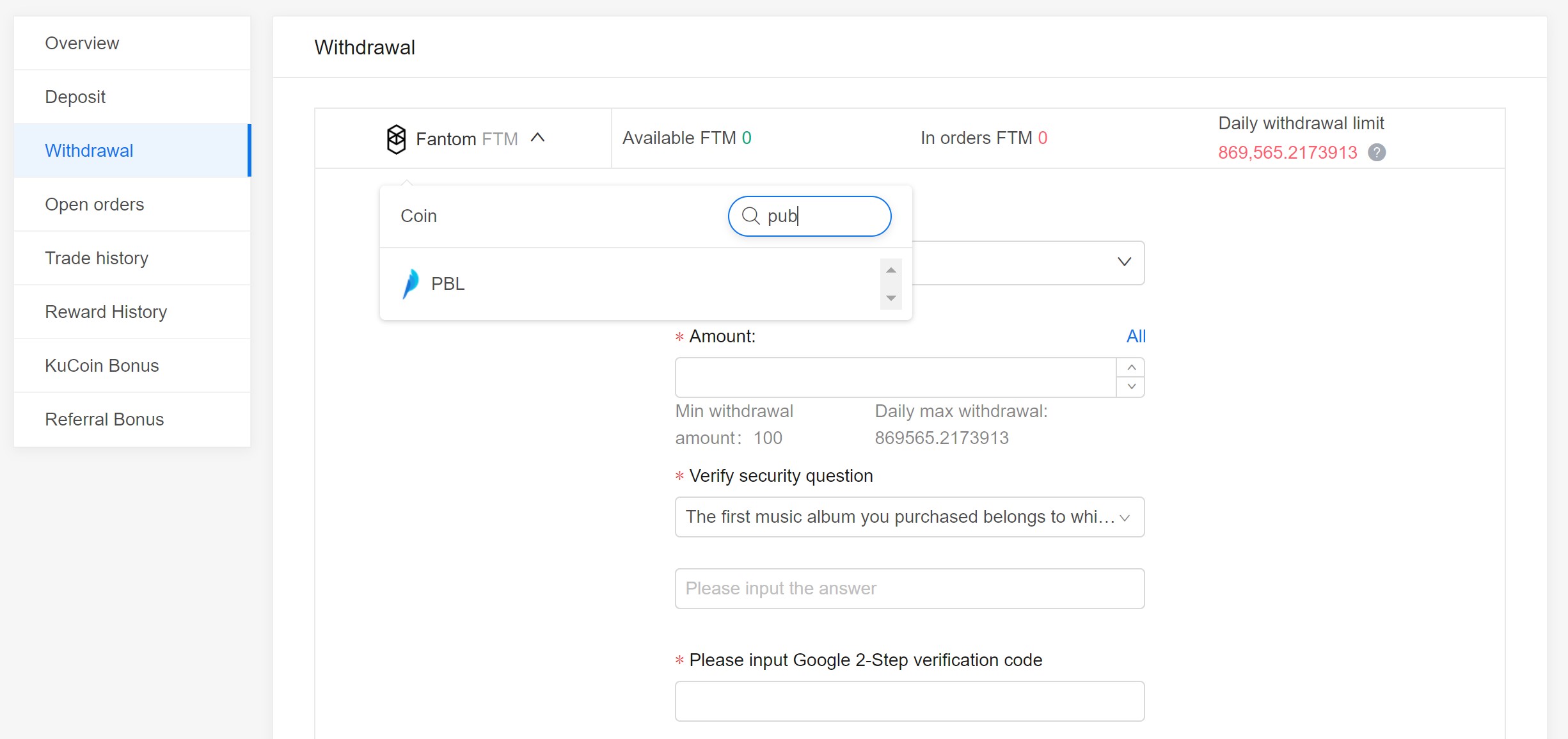 How to withdraw PBL tokens on KuCoin