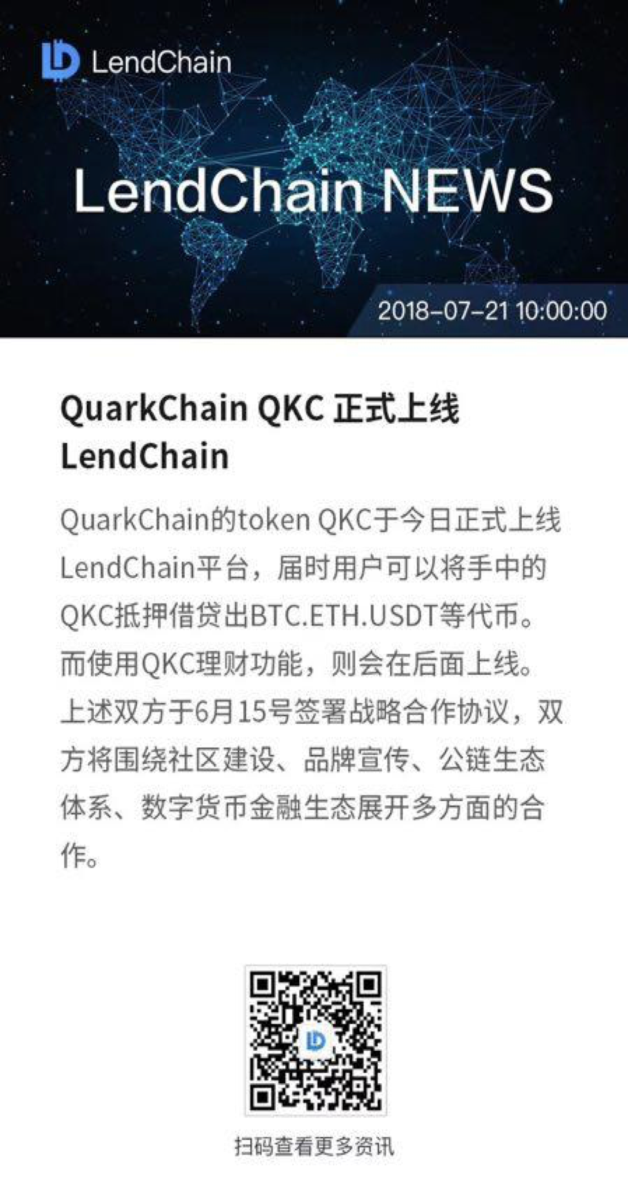 2.1. QKC is listed on LendChain