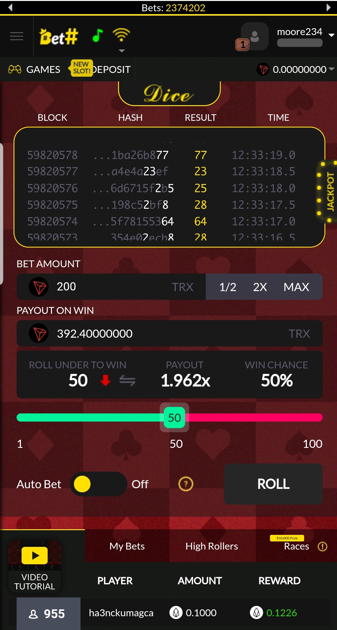 All players can earn from the platform dividend pool with the token (HASH). Buying the HASH tokens also have a lot to do in the profits users are given. Users can win the jackpot in the system by doing so but only one players get to win the jackpot.