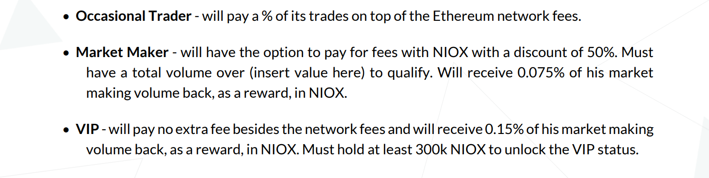 A new tier of VIP user accounts will be created, allowing anyone that holds over 300,000 NIOX to instantly become a VIP. VIP tiered accounts will pay no fees on our exchange and receive more NIOX tokens as a reward for being a liquidity provider.