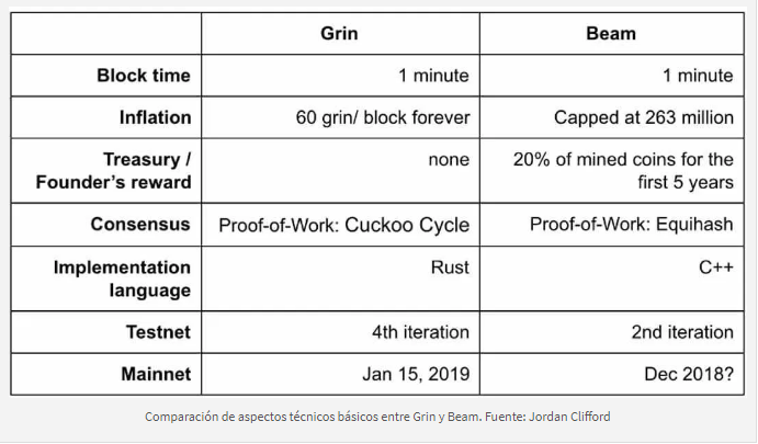 En enero de 2019 se producirá el lanzamiento de dos criptomonedas enfocadas en la privacidad: Beam y Grin. Se trata de los dos primeros proyectos en utilizar protocolo MimbleWimble, para construir su red.