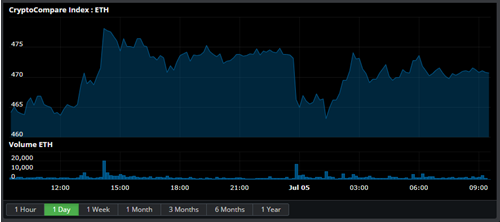 The Ethereum price has risen 2.05% over the past 24 hours and is currently sitting at $470, with over $150 M worth of Ether exchanged in the past 24 hours on the ETH/USD pair which has a 13.2% market share of the daily trading volume.