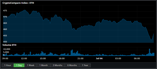 The Ethereum price has dropped 1.33% over the past 24 hours and is currently sitting at $457, with over $170 M worth of Ether exchanged in the past 24 hours on the ETH/USD pair which has a 14% market share.