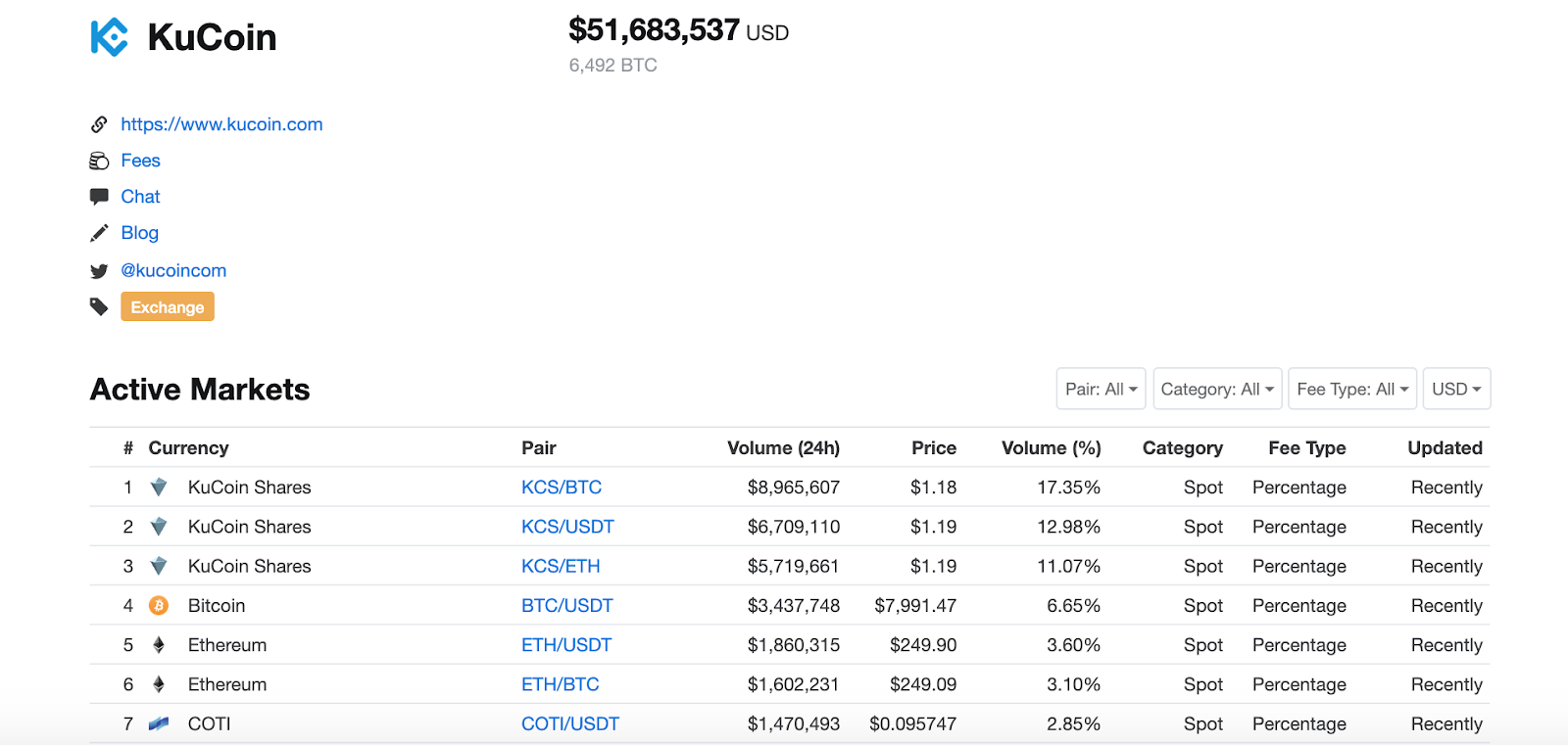 Once we begin to analyze the daily trading volumes for both exchanges it’s clear that the Bibox data is being vastly overstated. On June 7th 2019 at 2pm UTC the daily trading volume for Kucoin was around $51.7M USD. Considering their monthly traffic numbers this would indicate that the average user is trading about $361 per day. This is a reasonable number and shows exactly why Kucoin is generally seen as a reputable exchange in the industry.