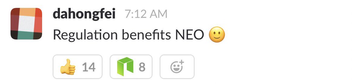 Starting with NEO Coin, as I have already posted about NEO FUD yesterday, but today bright news came into light, showing screenshots of NEO founder dahongfei commenting whole situation about NEO and China regulations on Slack, what made NEO gain 10% back in few hours.