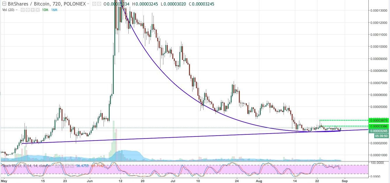 BTS aka Bitshares was slowly loosing its value past 2 months getting back to basic levels. Maybe we will see another rally to the top here.