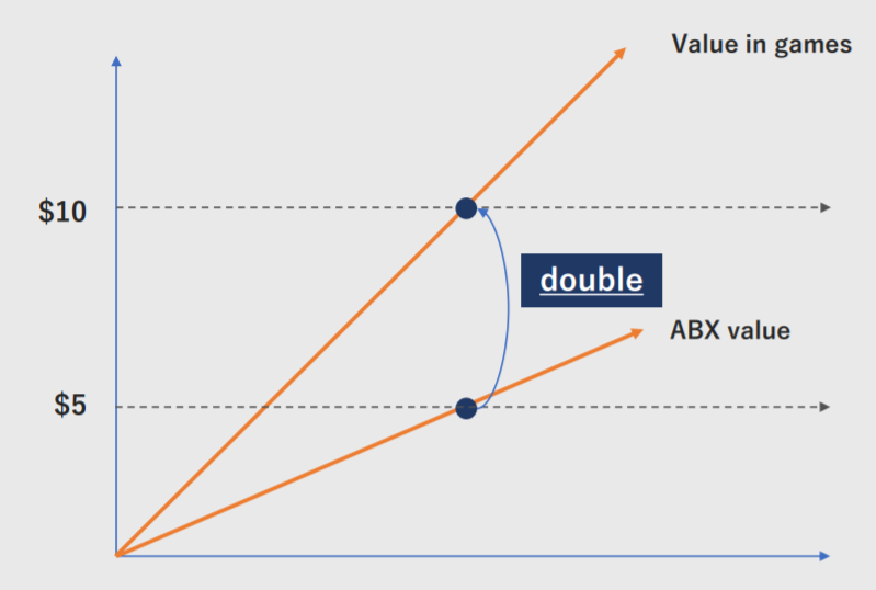 - Ketika nilai ABX adalah $ 5, itu setara dengan $ 10 dalam game.