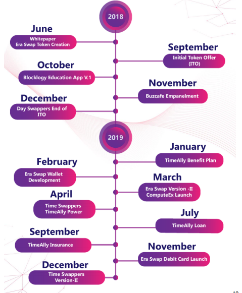 Clients pay consultants in EST-Era Swap Token. The platform is equipped with many reward-based programs by TimeAlly such as Blockology, which is an educational app, Computex, which is an exchange program (OTC exchange), and a highly secured wallet.