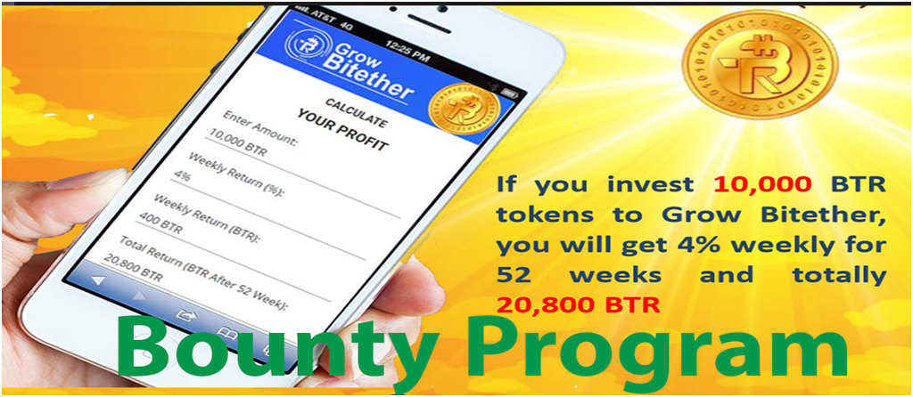 - Grow Bitether: Grow Bitether is the great program for long term believers of Bitether (BTR) where you can purchase package using BTR and get 4% weekly return including invested amount for 52 weeks.