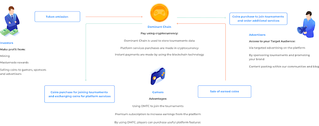 The chain Dominant provides tournament automation and award fund allocation. Each individual player, organization or brand can organize their own tournament. For participants, new opportunities open up to organize competitions, collect tournaments, to create a serious prize fund. We have developed our own predominant electronic money for these goals. Because electronic money will be equally necessary for players and brands, the demand for it will constantly increase. After completion of ICO, electronic money will be available on exchange transactions, this will allow the investment to be recovered. Block technology provides scale, thanks to the participation of a large number of amateur audiences in eSports tournaments. This technology also opens up new markets for Dominant Chain.