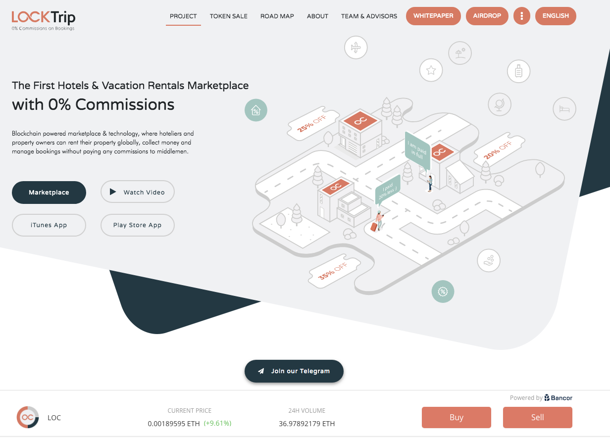 Besides the amazing title, “The First Blockchain Hotel & Vacation Rentals Marketplace, with 0% Commissions,” LockTrip has the Bancor trading function integrated on the bottom right corner of the LockTrip home screen!