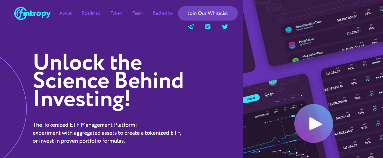 Fintropy has been developed to provide a unique all-in-one platform to manage Tokenized Exchange Traded Funds which gives users room to trade and hold cryptocurrencies, NFTs, stocks, commodities, and the lots of variations of their assets. This unique platform allows users to create his or her own unique portfolios of combactive cross-market strategies, which also give investors access to easily pick and select from these varying mix of portfolios, these and many more in one platform. The Fintrofy platform will also provide a portal on it where users can access varying numbers of credible DeFi services. This unique platform also give room that ensures the aggregation of almost any existing and verified asset, Exchange Traded Funds, or hedge funds all over the cryptocurrency ecosystem, and also ensuring that security and required actions which are required to make this activities a success. This revolutionary platform will also ensure that it balances safety of investors while still ensuring that asset managers are given the required freedom to go after their preferred strategies, and get richly rewarded in the process. The platforms LP synthetic token solidly backed by underlying assets, will permit traders from the nuke and crannies of the world to effectively participate in the global economy that is waxing stronger each and every day.