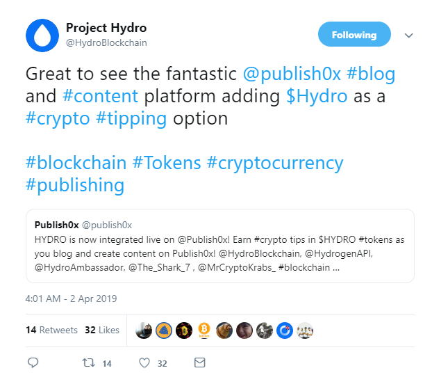 The platform I am writing about has no native tipping token and pays readers and bloggers out in Basic Attention Token (BAT), DAI and HYDRO, though tipping tokens do change every so often.
