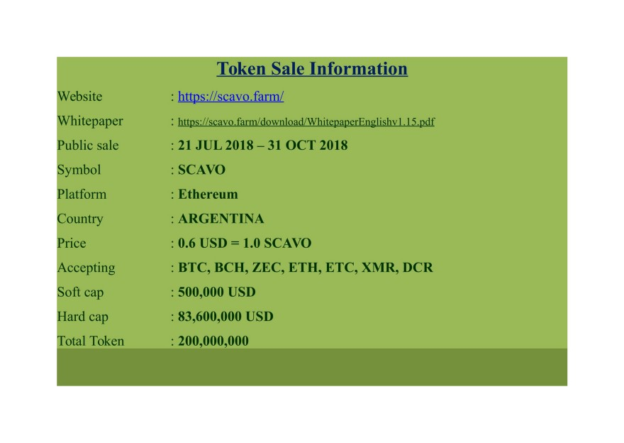 Democratic deciding is vital to Scavo Technologies, and holders of the SCAVO token are able to vote on selections with the employment of good contracts. The token sale started on July fifteenth, and can run till Oct thirty first of this year.Scavo Technologies offers a scalable , intelligent, environmentally friendly answer that maximizes the employment of energy resources with a "zero carbon footprint."