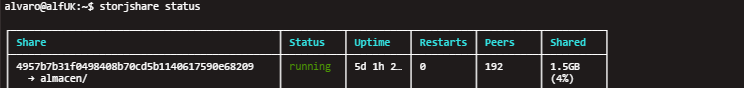 We can check how is our storage status, in this case I have been running a node for 5 days , 1.5 Gb are being used out of 40GB
