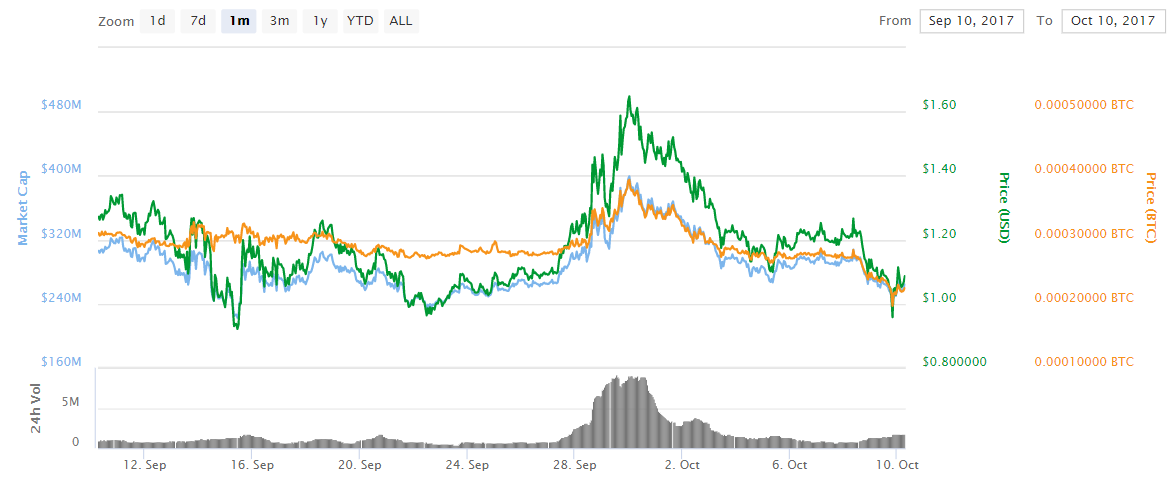 Steem is currently trading at a low of $1.09 or 0.00022452 BTC, which is far away from it´s latest high of more than $1.65 or 0.00039 BTC. That being said it might be clear that an investment into Steem could pay pretty well.