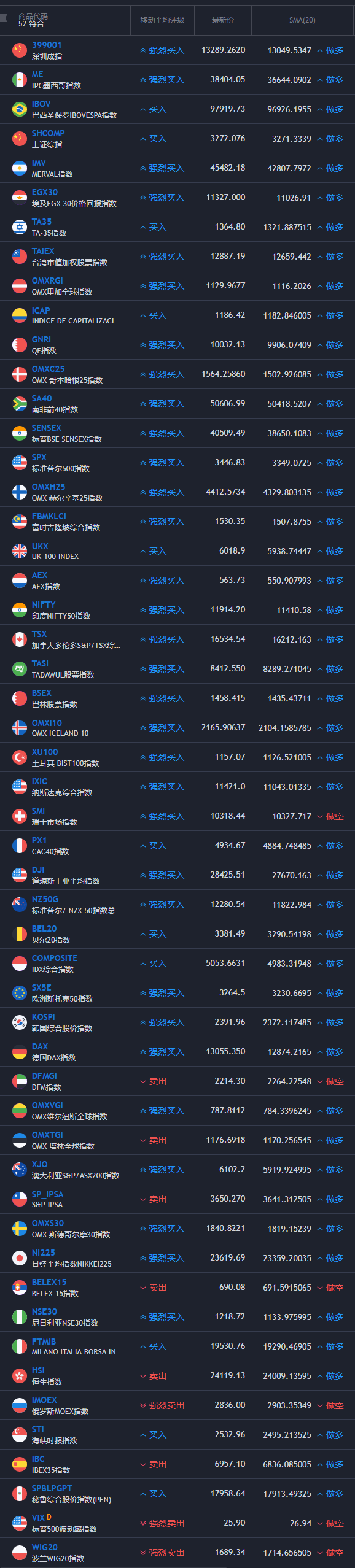 全球金融市场回暖,52大全球主要指数(最大的经济体指数)几乎呈现一致的SMA(20)做多信号,加密货币市场同样如此,昨晚爆发式的探底回升到今天下午开启的爆发行情,无不跟随全球市场集体回暖狂潮。