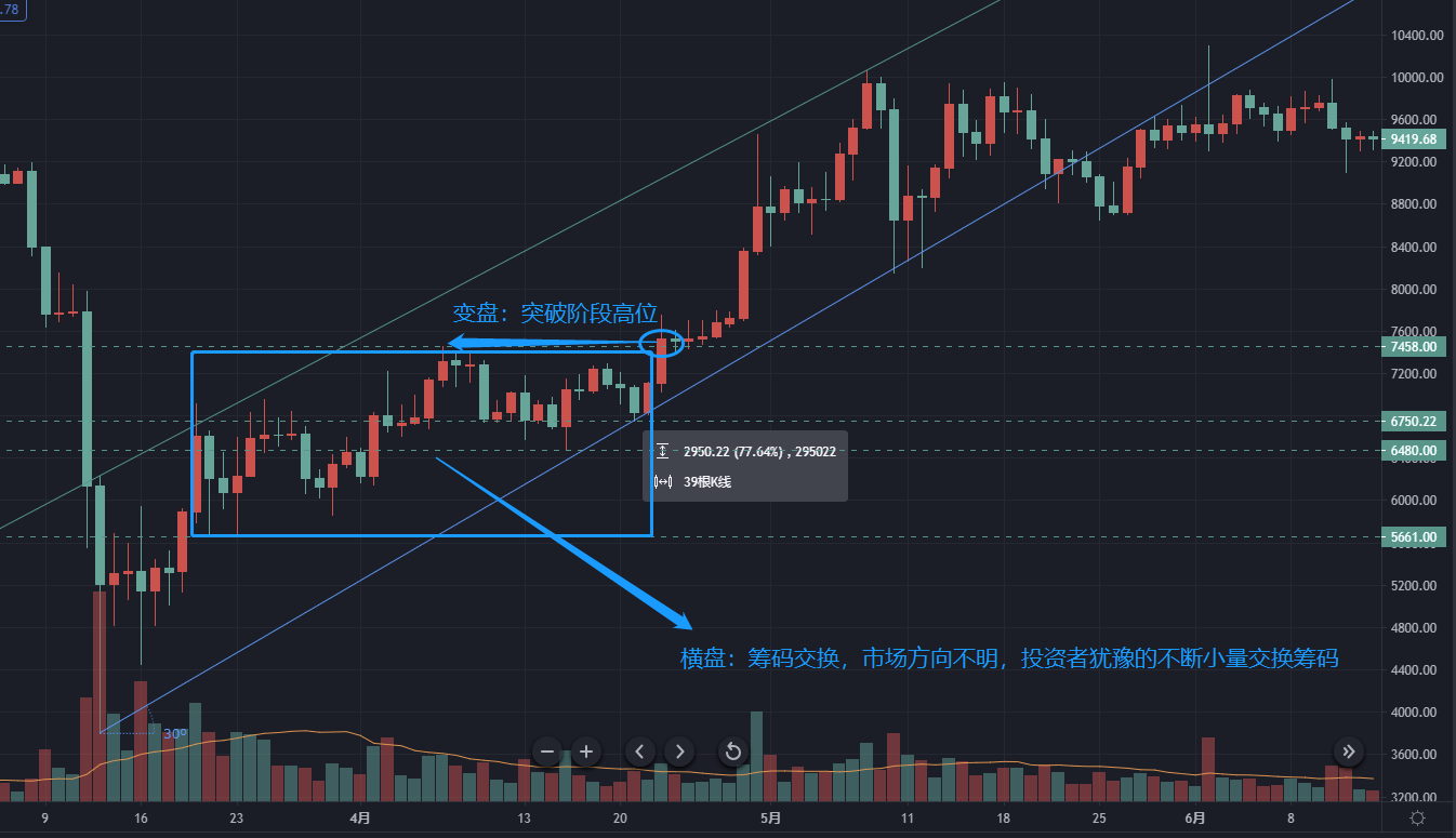 当交换完成,再次突破12448美金只是时间问题,由于上方成本的持仓者仅仅1个月的时间,我个人认为这一次突破会比3月大跌后的突破来得更快更猛。