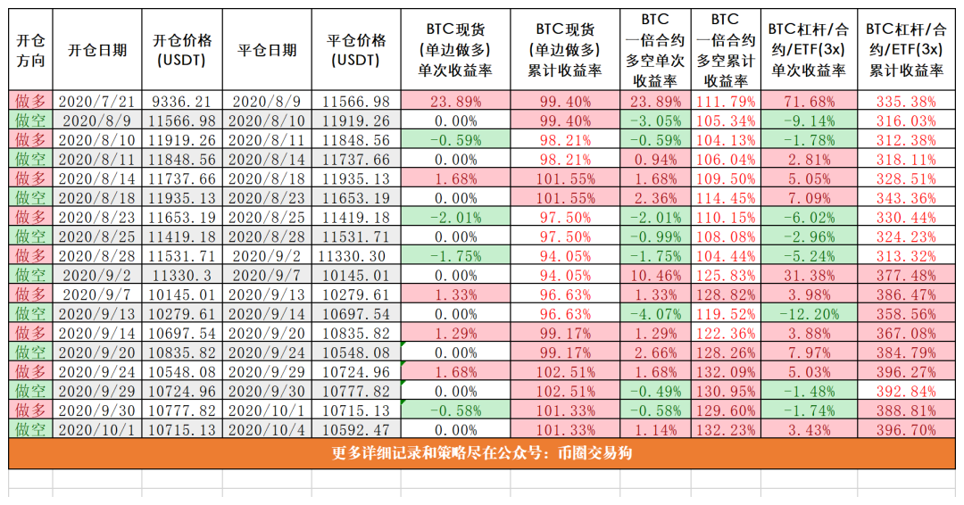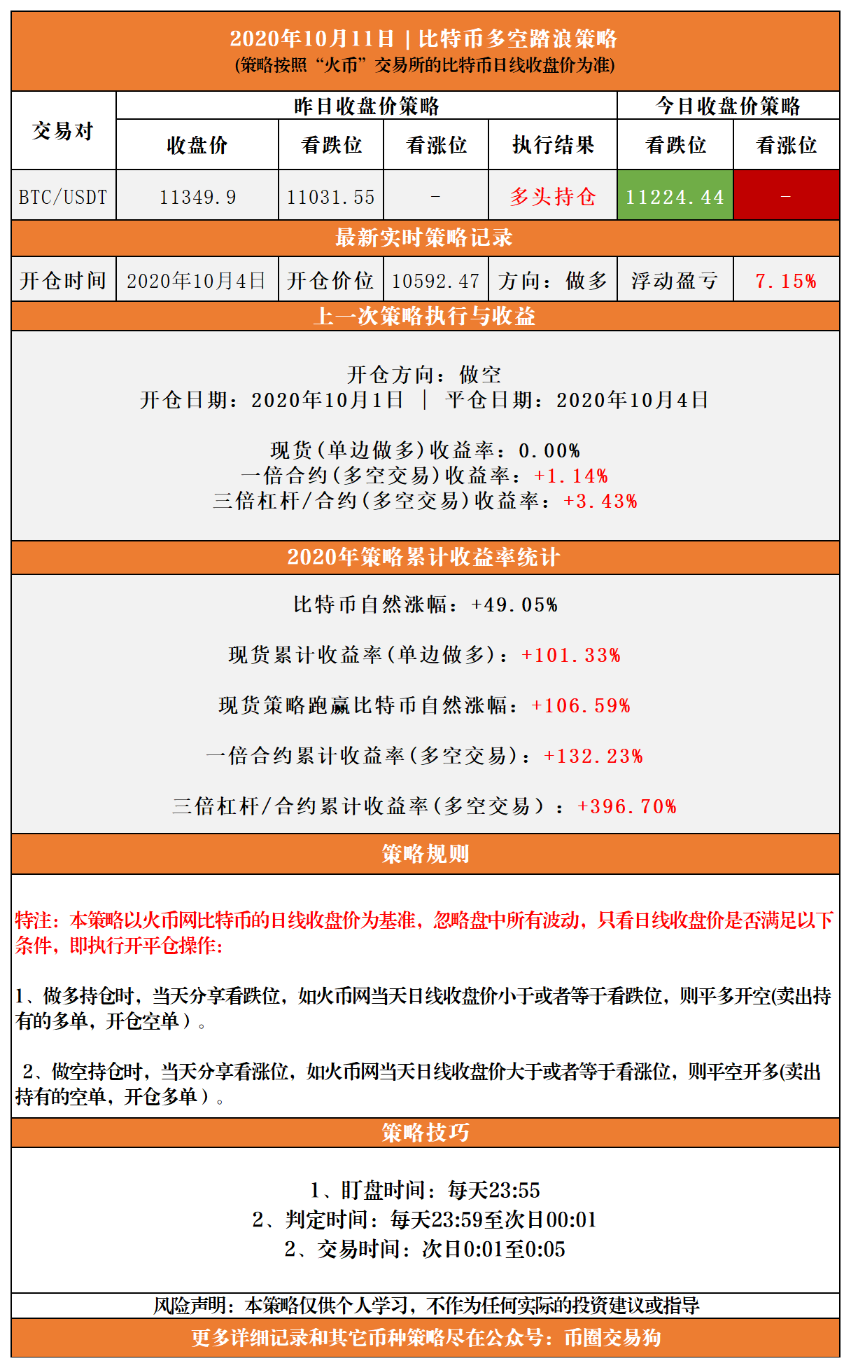 (10月11日比特币多空收盘价踏浪策略)