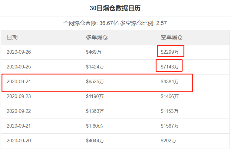 近日,多头强力杀入,空头爆仓惨不忍睹,从“爆仓数据日历”可见,9月24日无疑成为了由空转多的关键日,多单爆仓9525万美刀,空单爆仓4384万美刀,9月25日起风水轮转,继续做空的币友爆仓比例达到了5:1的绝对力度。