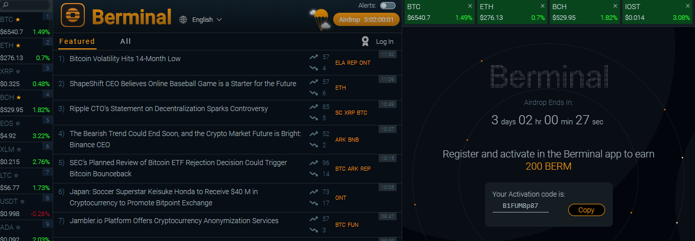 Register and activate in the Berminal app to earn 200 free BERM, which value is around 10$.