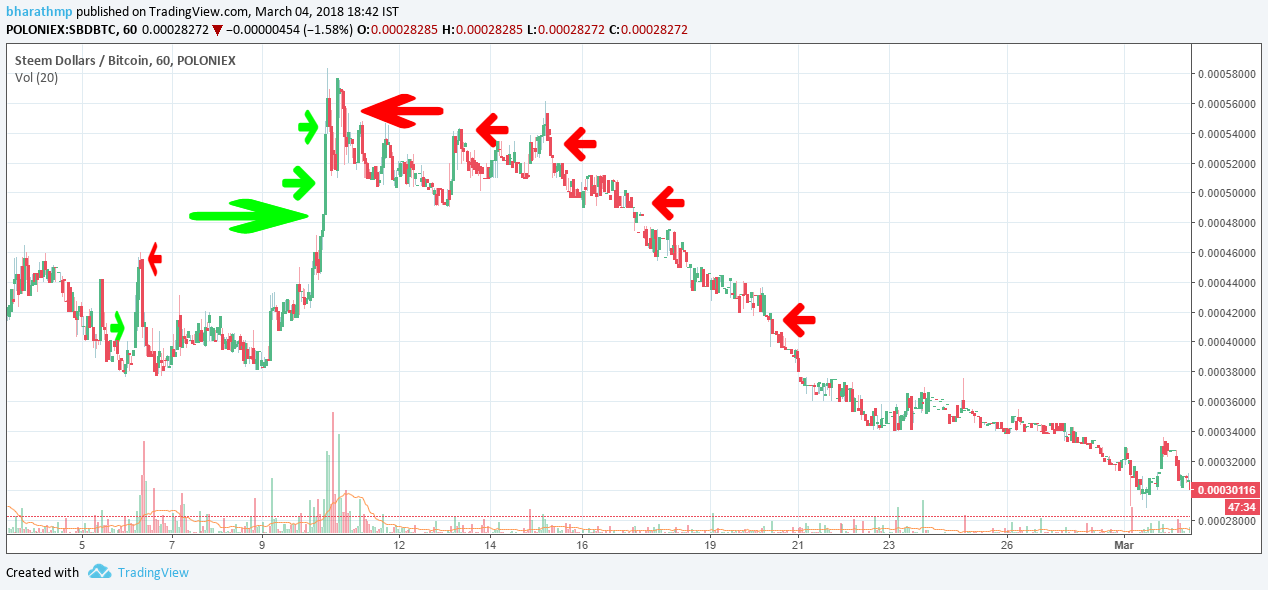 I will explain how they buy and sell with an example:- for ex they buy SBD or STEEM in price of 0.00031380 BTC [3.52 US Dollar] for 10 BTC (31947.10006373 SBD or STEEM ) and they start selling SBD or STEEM ( 0.00052115 BTC to 0.00032456 BTC) fist they sell 50% of there SBD or STEEM 15973.5506 for the price of 0.00052115 BTC it means they invest 10 BTC and after they sold 50% they got 8.30380436 BTC out of 10 BTC and like this they will sell they remaining SBD or STEEM 25%,15%,10% till they sold there all SBD or STEEM like this they will make minimum 2 BTC profile or maximum 3.5 BTC SO it very good time to invest in steem or sbd my account for daily updates for when to invest and CRYPTOCURRENCY market update.