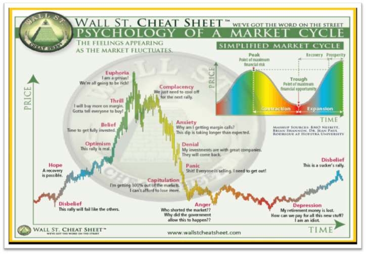 The Wall St Cheat Sheet has proven to be effective at analysing the psychology and price action of market cycles for various asset classes. Since a lot of markets are emotionally driven, it can be quite accurate. The three key points on this chart which are relevant have been indicated above by the blue circles. The Bitcoin charts have recently correlated with this cheat sheet very well and it is something that has been discussed widely in the community.