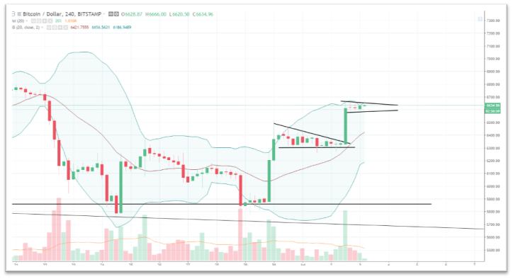 As seen above, the 5800-5900 level held very well putting in somewhat of a double bottom reversal. This was followed by a surge of volume then a bull flag. The bull flag broke out and surged again, with a new flag beginning to form.