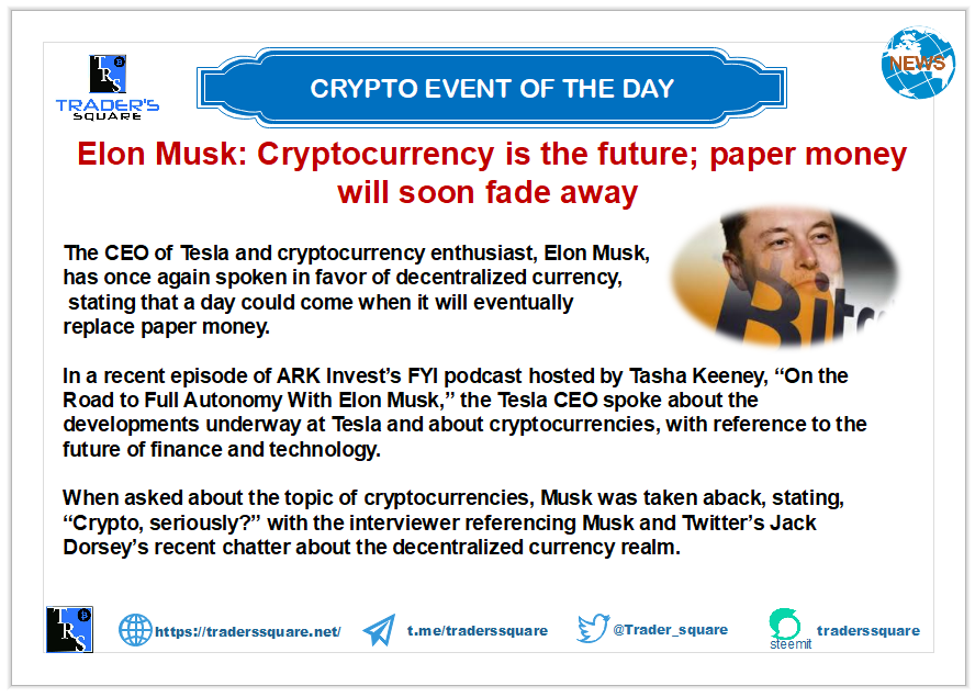 crypto event of the daytraderssquare (25)in #cryptocurrency • 7 years ago JOIN US NOW: https://t.me/joinchat/AAAAAEZs8lplA46OZPmg4Q … … … If you dont want to miss any trading-calls #crypto #bitcoin #cryptocurrency #btc #Ethereum #blockchain #eth #currency #xrp #trading #exchange #ltc #altcoin #ico #ripple #altcoins #binance #market #mining #news #bitcoin #btc #tesla