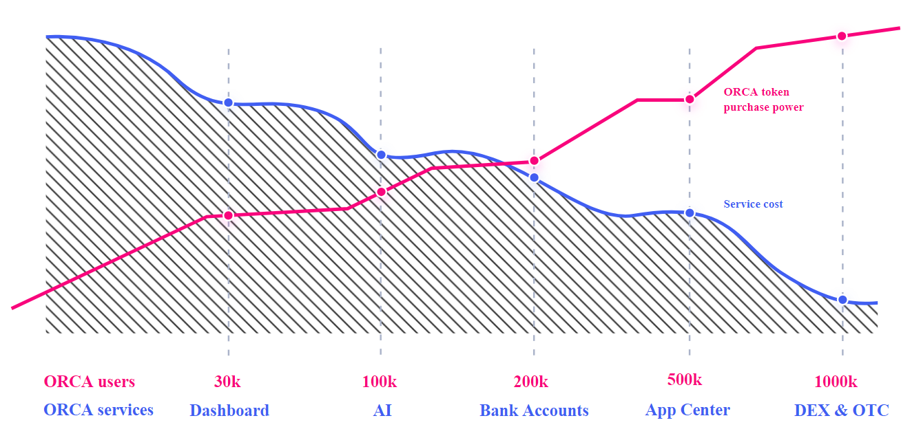 Platform’s internal dynamics is structured to provide user benefits along the way. Besides the Loyalty Program, with increasing platform user base ORCA’s negotiation power will increase and network effects will enable to attract new partners from the financial world. In exchange for good rates, ORCA Alliance will give access to a vast group of the target audience for payment service providers.