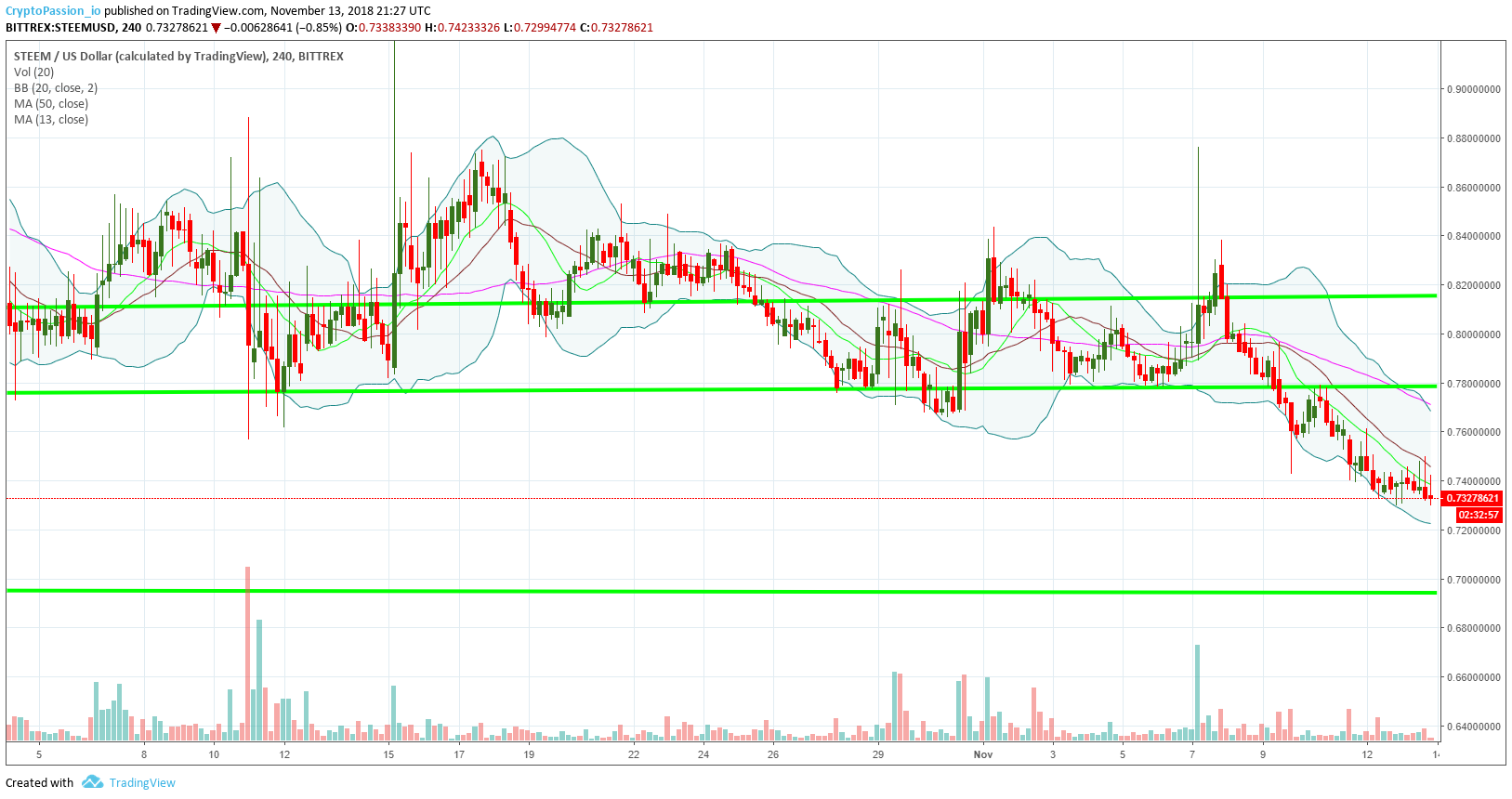 Nothing really new on the STEEM. Since the Pull Back which has been validated, the STEEM is dropping more and more each day and I think we could go quickly test the support line around 0.69$. Let's see the coming hours, we could see a little up but I don't think the correction can stop like that in the middle of nowhere.