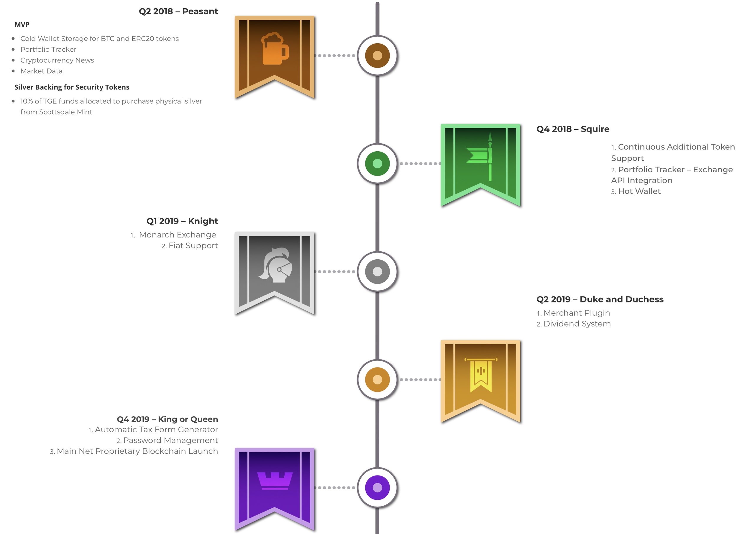 Monarch планирует создать платформу, которая позволяет пользователю добавлять информацию о своих банковских счетах в Monarch, позволяя покупать криптоактивы исключительно с платформы Monarch. От Monarch они смогут покупать или продавать криптоактивы, а затем переводить Фиат обратно на свой банковский счет. Мы планируем создать инструмент генерации паролей, который обеспечит электронное хранение приватных ключей и паролей пользователей ко всем их крипто-и не крипто-сайтам или сервисам.